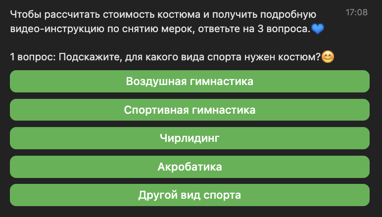 Чат-бот отправлял пользователям приветственное сообщение с раскрытием оффера и закрытием возражений, добавили квал вопросы: