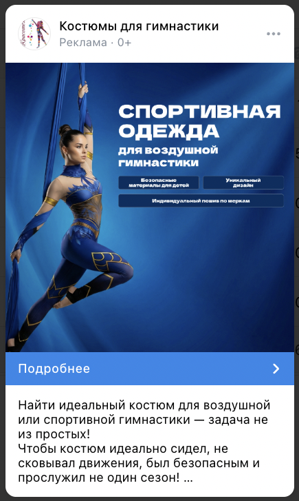 В этом кейсе расскажем о работе с магазином спортивной одежды “Красотея” — производителем костюмов для воздушной и спортивной гимнастики, чирлидинга, акробатики и цирка. Уже за первый месяц мы вышли на ROMI 110,6%